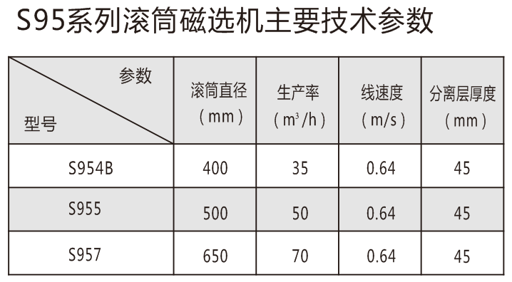 注:S95、S97、S99系列永磁分离设备,采用了高强磁性材料,具有磁性强、磁分离效果好、运转平稳、 性能可靠等优点
